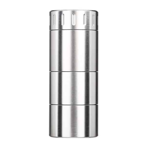 Size 97mm x 38mm , 85gr with 3 pots. Bottom Pot 28ml, fits approx. 3g ground material. Mini Pot 20ml, fits approx.2g ground material. ABV Pot - 28ml
