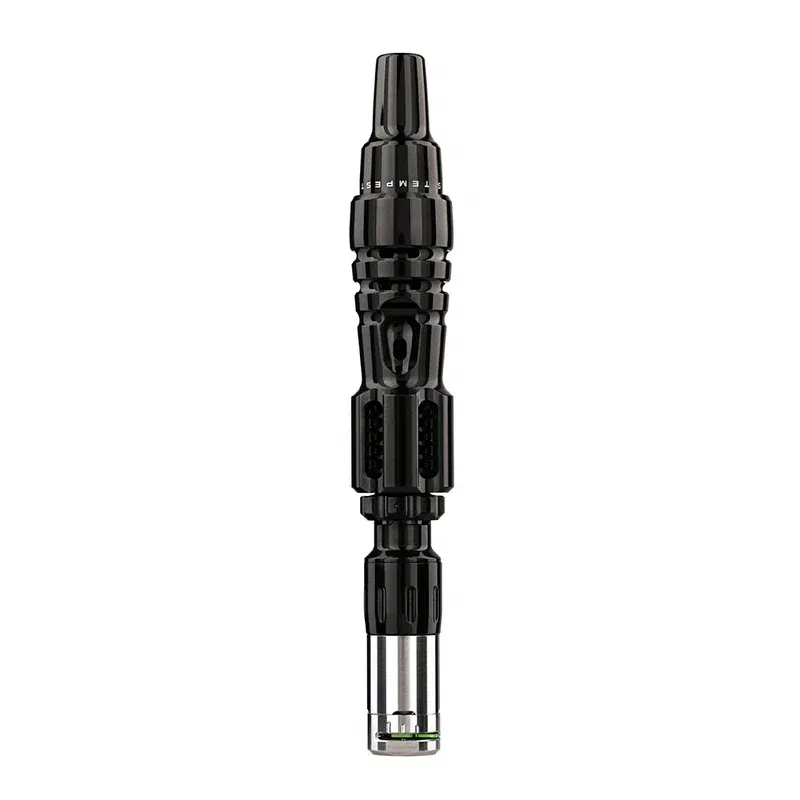 The entire body uses Grade 5 titanium for maximum durability and heat resistance. Titanium handles the thermal stress from rapid heating cycles while remaining lightweight at just 46 grams. The anodized aluminum heat shield option weighs slightly more but provides excellent thermal protection. Both shield materials keep the device comfortable to handle even during back-to-back sessions.