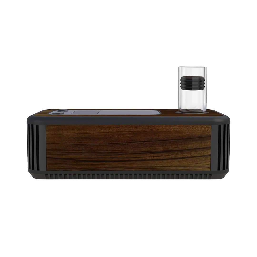The glass tube chamber has an adjustable ceramic insert you can raise or lower. This isn’t a gimmick – it fundamentally changes how the heater works with different devices. Push it up for devices that need closer coil proximity, drop it down for standard DynaVap caps.